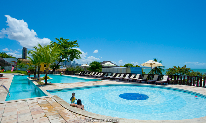 - Divirta-se com internet Wi-Fi nas áreas comuns, 3 piscinas (2 adultos e 1 infantil), espreguiçadeiras, guarda-sóis e serviços de bar, além de atividades recreativas e um espaço infantil com brinquedos, jogos, parquinho e piscina